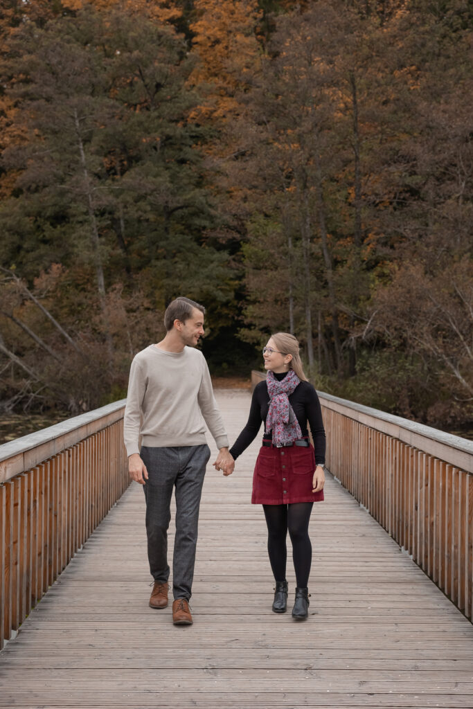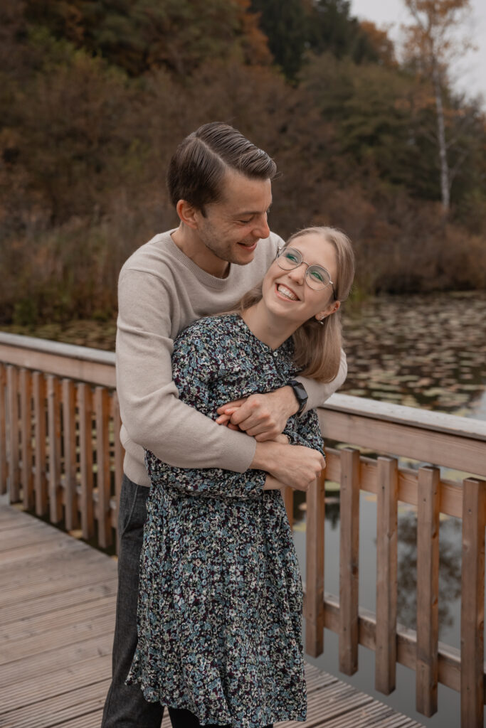 „Von Anfang an war der Kontakt mit Klaudia sehr angenehm und absolut professionell. Bereits im Vorfeld konnten wir unsere Fragen klären, so das wir mit einem guten Gefühl beim Shooting ankamen. Das Wetter war etwas regnerisch und bewölkt und damit scheinbar nicht auf unserer Seite, trotzdem sind die Fotos mit den herbstlichen Farben sensationell geworden. Das Fotoshooting selbst war eine sehr positive Erfahrung. Klaudia hat uns perfekt angeleitet so dass wir in kürzester Zeit vergessen hatten dass die Kamera mit dabei war. Ich hätte mir nicht gedacht das ich vor der Kamera so locker sein kann. Wir hatten einfach Spaß! Wir sind begeistert von den Fotos und besonders von der Natürlichkeit. Wenn wir die Bilder ansehen haben wir wirklich das Gefühl das Klaudia uns so fotografiert hat wie wir sind.“